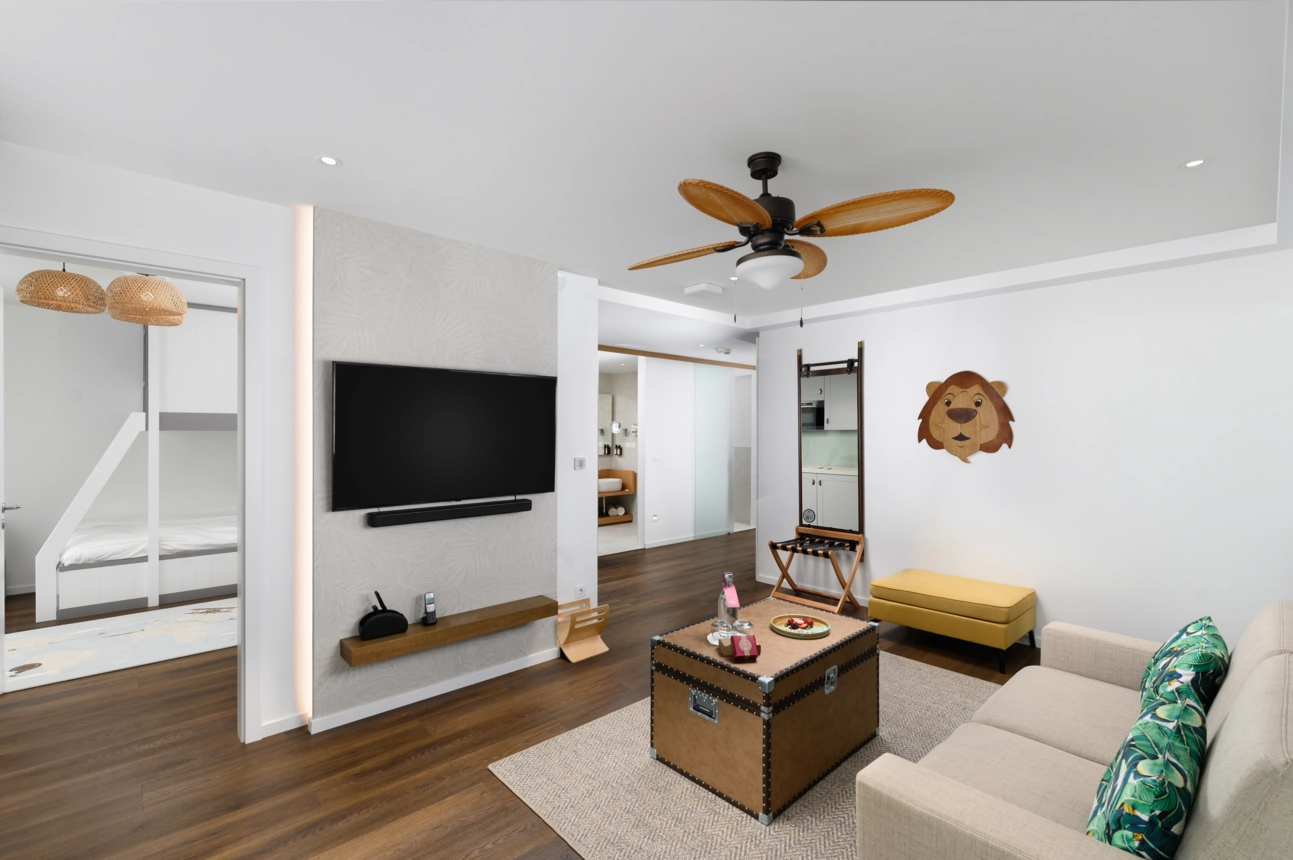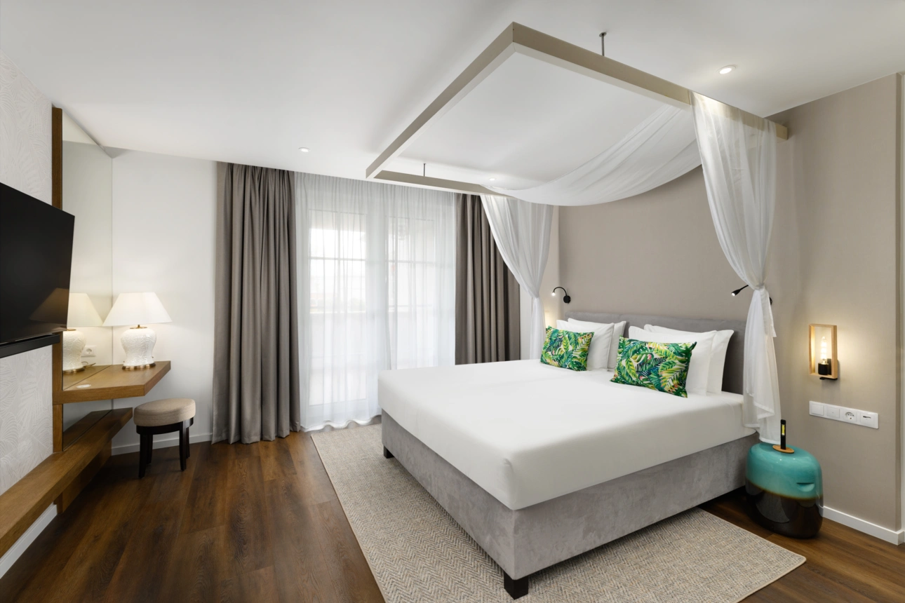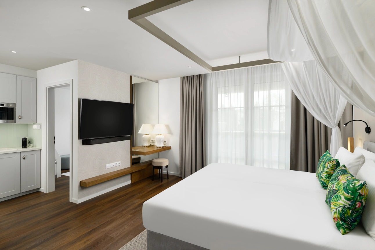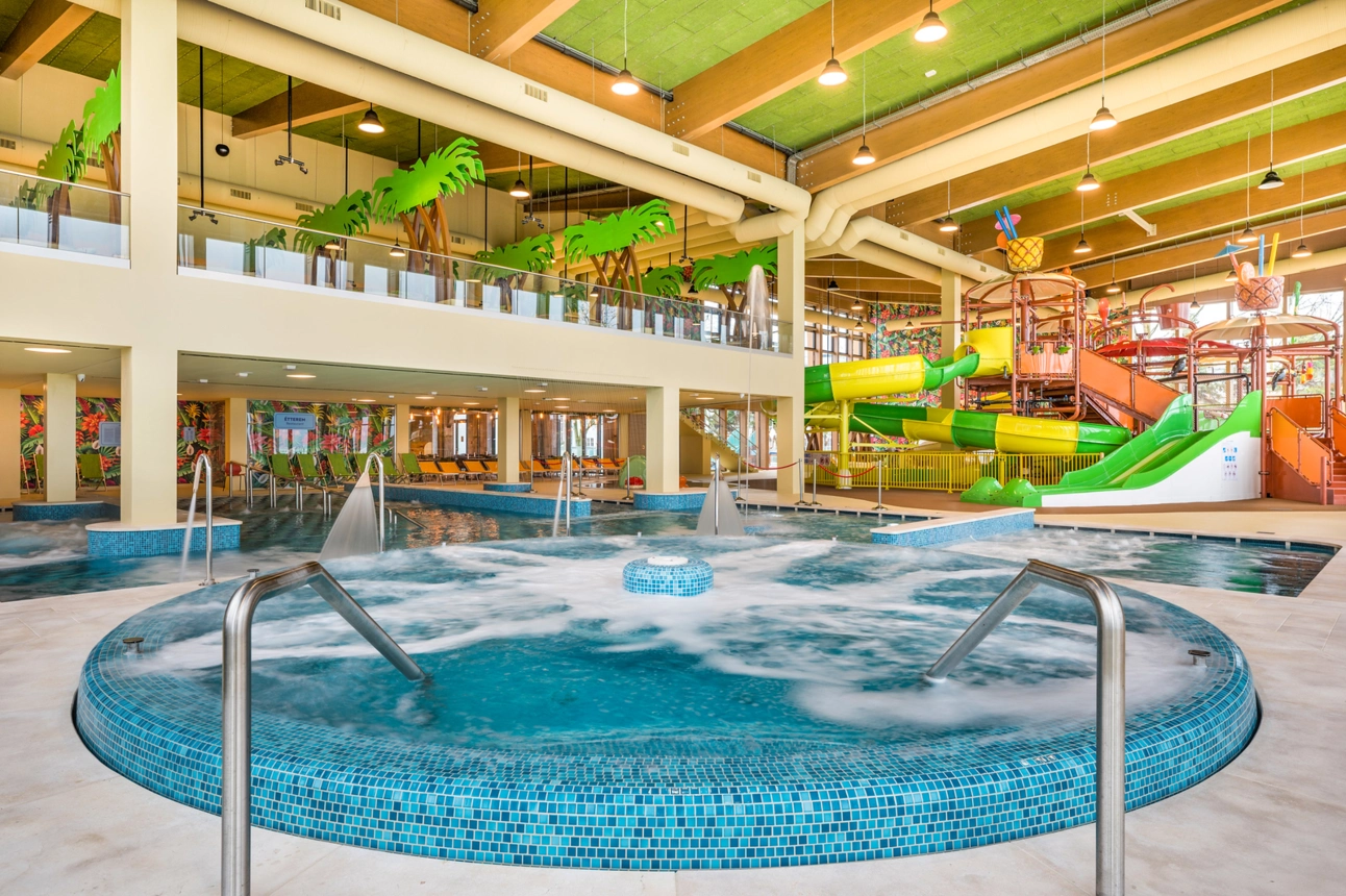 Az egyedi, karibi koloniális építészeti tematikájú, prémium kategóriájú wellness hotel, amely elsősorban a gyermekkel utazó családokra fókuszál és számukra nyújt a legmagasabb igényeket is kielégítő szállodai, illetve a szomszédos Familypark élményeivel kiegészülve, minőségi szabadidős szolgáltatásokat. A szálloda szobáinak kialakításánál elsődleges szempont a gyermekek kényelmes elhelyezhetősége és kiszolgálása mindamellett, hogy a szülők is élvezhessék privát szférájukat. Ennek érdekében 109 többféle méretű és elrendezésű szoba és lakosztály kerül kialakításra, melyekben a baba- és gyermekbarát felszerelések és bekészítések is helyet kapnak. A közösségi terek eleganciájuk mellett funkcionalitásukban és tematikus élményszerűségükkel tökéletesen alkalmasak lesznek a családosok közlekedésére, étkezésére illetve kikapcsolódására. A szálloda legfelső, 4. emeletén található egy kizárólag a szülők részére fenntartott wellness, SPA és fitness részleg is, ahol lélegzetelállító balatoni panorámával a felnőtt vendégek gyerekmentes feltöltődése is biztosított.